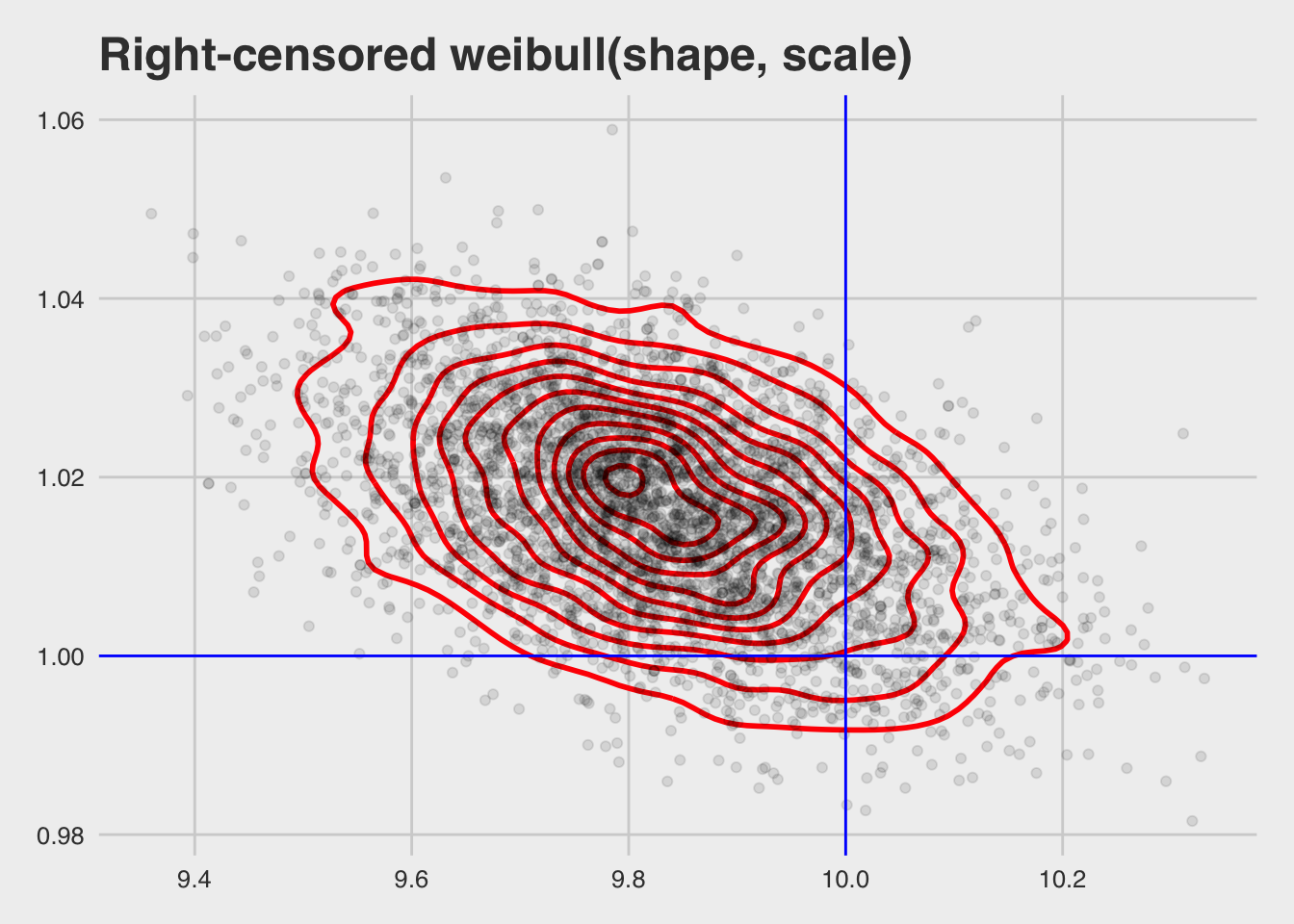 ggtitle("Right-censored weibull(shape, scale)") +