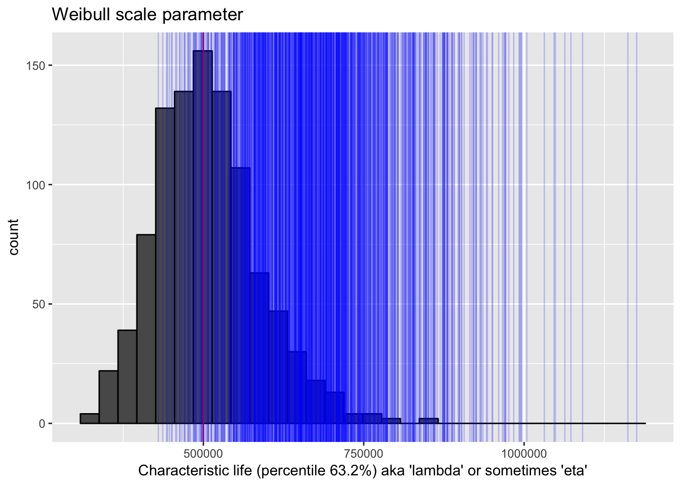 xlab("Characteristic life (percentile 63.2%) aka 'lambda' or sometimes 'eta'") +
